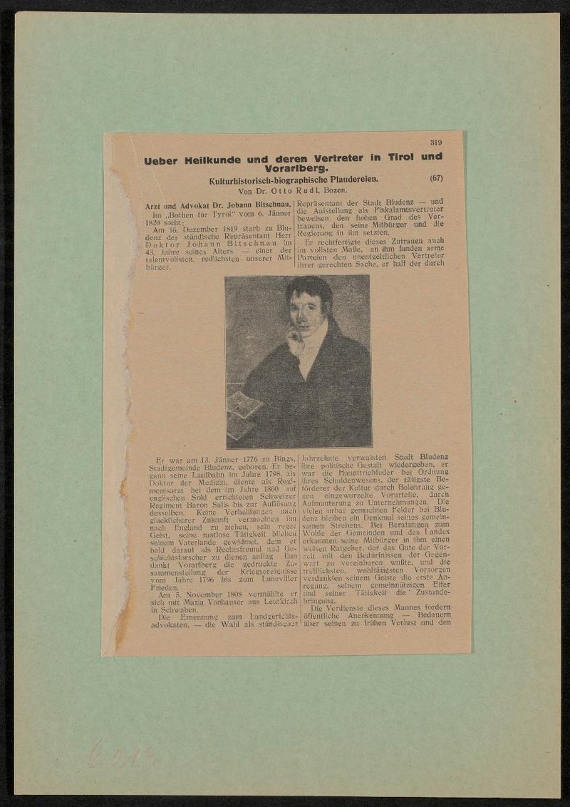 Der abgedruckte Beitrag stammt von Otto Rudl aus: Etschländer Ärzteblatt, Bozen, Seite 319-320.
