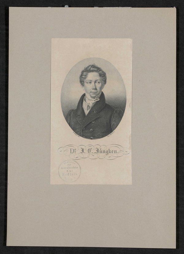 Die Zeichnung wurde von Franz Krüger, der Kupferstich von Auguste Hüssener angefertigt. Vorderseitig mit einem Stempel des Institutes für Geschichte der Medizin, Wien, versehen.
