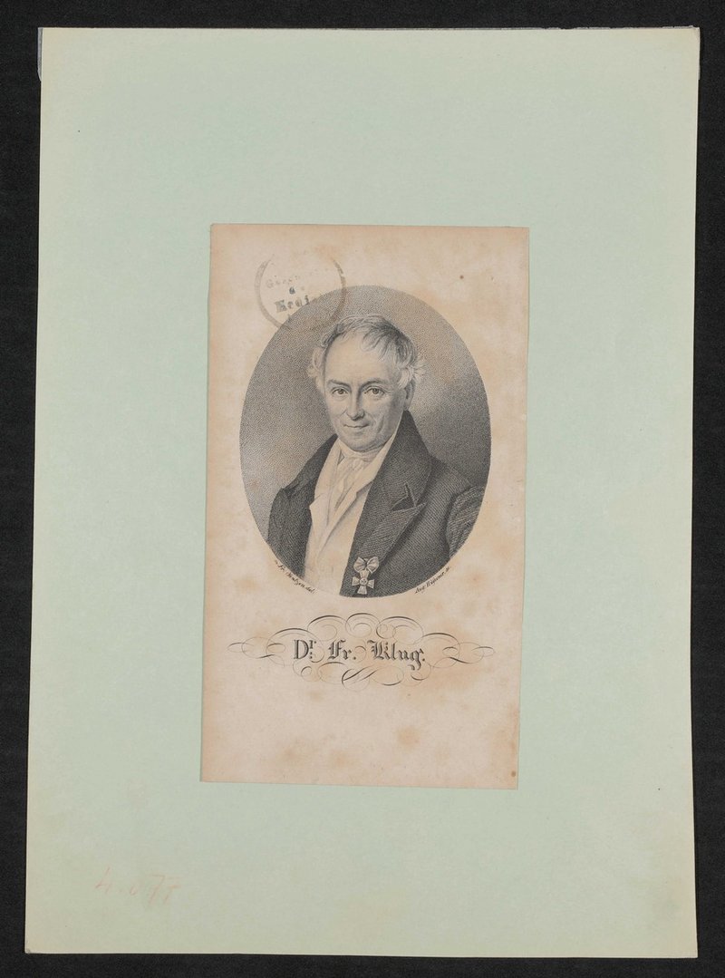 Der Kupferstich ist von Auguste Hüßener auf Grundlage einer Zeichnung von Friedrich Jentzen angefertigt worden. Vorderseitig mit einem Stempel des Instituts für Geschichte der Medizin, Wien, versehen.