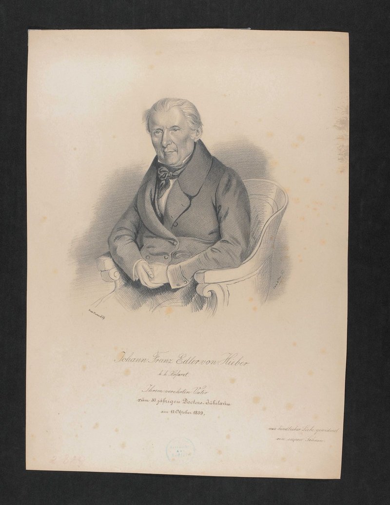 Die Zeichnung stammt von L. Bern. Die als Vorlage dienende Lithografie ist 1839 von Leopold Fischer angefertigt worden. Vorderseitig mit einem Stempel des Instituts für Geschichte der Medizin, Wien, versehen.