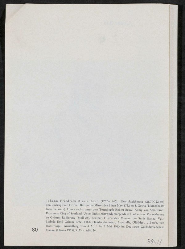 Auszug aus: Sonderdruck aus: Medizinhistorisches Journal, Bd. 4, Heft 1, Hildesheim 1969. Dem Bild lag eine Bleistiftzeichnung von Ludwig Emil Grimm zugrunde, das sich zum Zeitpunkt der Entstehung im Historischen Museum der Stadt Hanau befand.