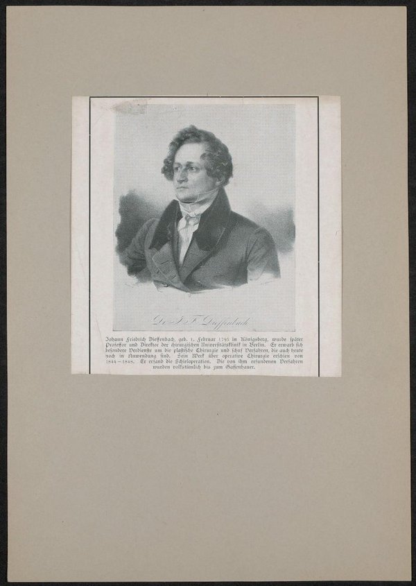 Unterhalb des Bildes befinden sich biographische Angaben zu Johann Friedrich Dieffenbach.
