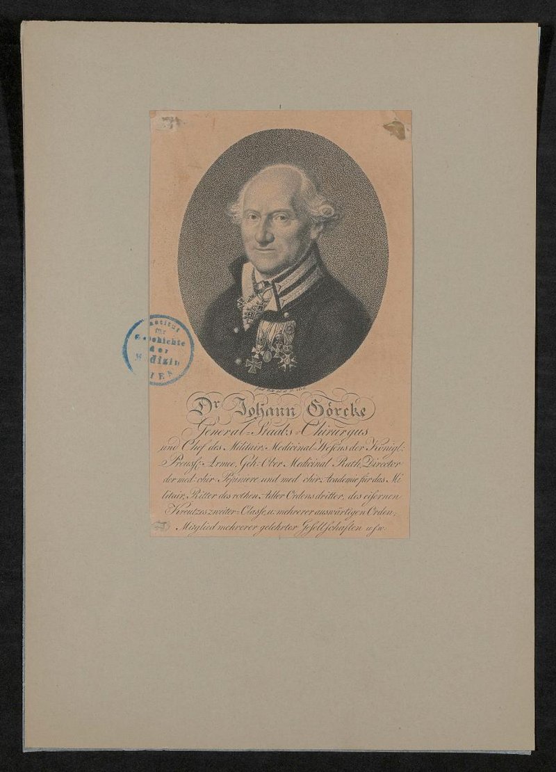 Der Kupferstich wurde von Johann Friedrich Bolt angefertigt. Auf der Vorderseite befindet sich ein Stempel des Instituts für Geschichte der Medizin, Wien.
