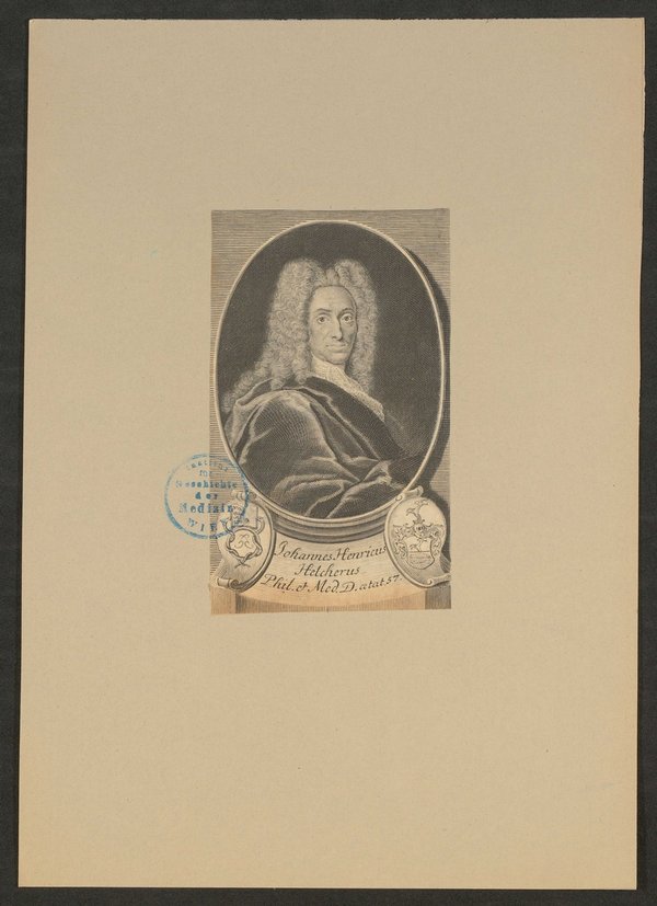 Die Anfertigung des Kupferstichs wird Martin Bernigeroth zugeschrieben. Vorderseitig mit einem Stempel des Instituts für Geschichte der Medizin, Wien, versehen.