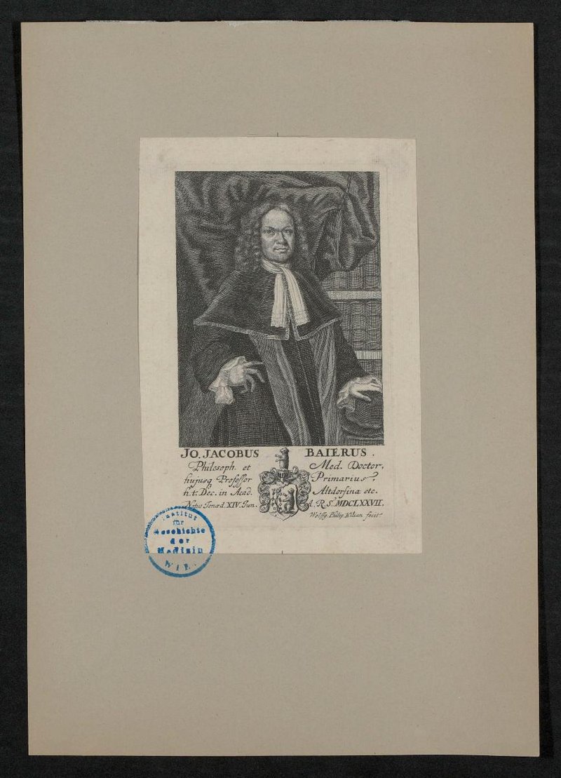 Der Kupferstich wurde von Wolfgang Phillip Kilian, Augsburg, angefertigt. Vorderseitig mit einem Stempel des Instituts für Geschichte der Medizin, Wien, versehen.