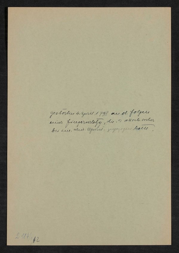 Vorlage war ein Kupferstich, der zum Zeitpunkt der Entstehung der Kopie Teil des Bildarchivs der Österreichischen Nationalbibliothek, Wien, gewesen ist. Dieser ist 1792 von Franz Wrenk auf Grundlage eines Gemäldes von Heinrich Friedrich Füger angefertigt worden. Neg I 23/9, 10