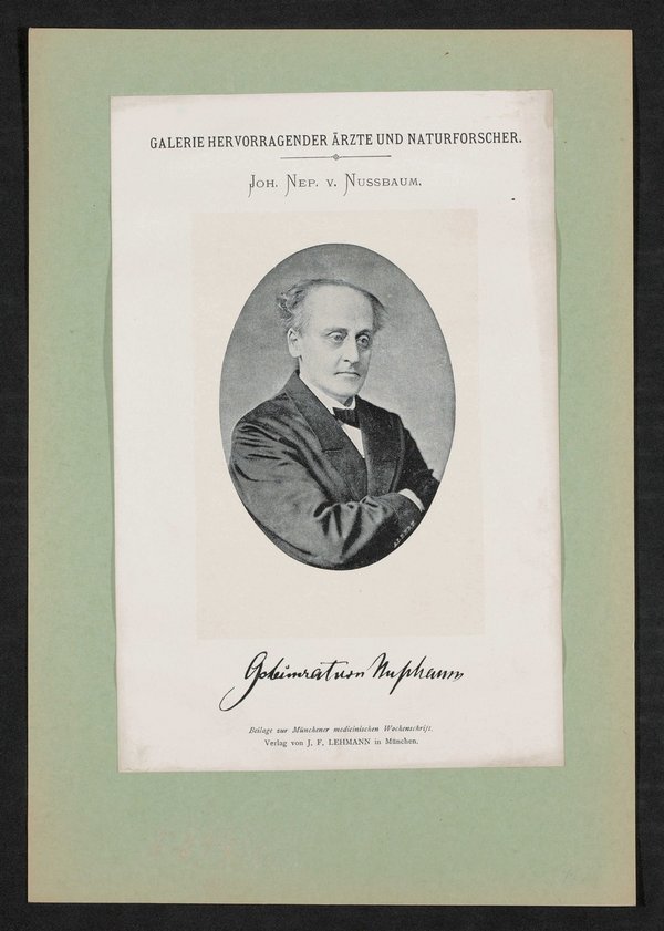 Auszug aus: Galerie hervorragender Ärzte und Naturforscher, in: Beilage zur Münchener medizinischen Wochenschrift, München, Bl. 2.