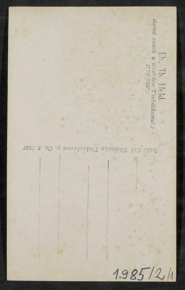 Vorlage war ein Ölgemälde unbekannter Urheber:innenschaft. Die Postkarte ist durch Antonin Dedourek, Třebechovice pod Orebem, verlegt worden.