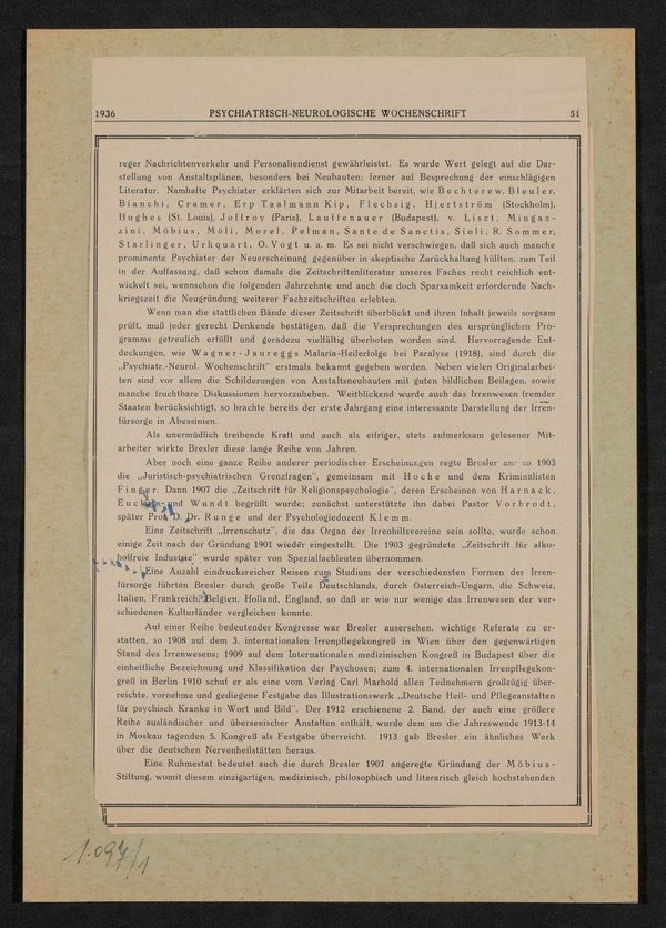 Das Bild ist Teil eines Berichts in der Psychiatrisch-Neurologischen Wochenschrift, Nr. 5, 38. Jahrgang, 01.02.1936, S. 49.
