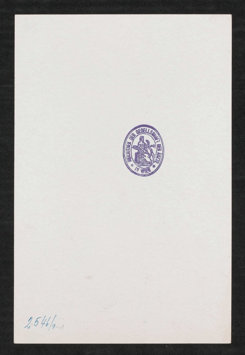 Auszug aus: Galerie hervorragender Ärzte und Naturforscher, in: Beilage zur Münchener medizinischen Wochenschrift, 1938, Bl. 542. Das Bild wurde von Julius Friedrich Lehmann verlegt. Rückseitig befindet sich ein Stempel der Gesellschaft der Ärzte, Wien.