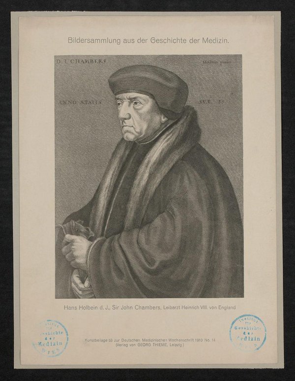 Als Kunstbeilage Nr. 53 in der Bildersammlung aus der Geschichte der Medizin, in: Deutsche Medizinische Wochenschrift, Nr. 14, 1910, veröffentlicht. Die Angabe von 88 Jahren ist falsch. Bei dem Druck handelt es sich um eine Reproduktion eines Gemäldes von Hans Holbein dem Jüngeren. Das originale Gemälde befindet sich in der Gemäldegalerie des Kunsthistorischen Museums Wien. Im Verlag von Georg Thieme erschienen.