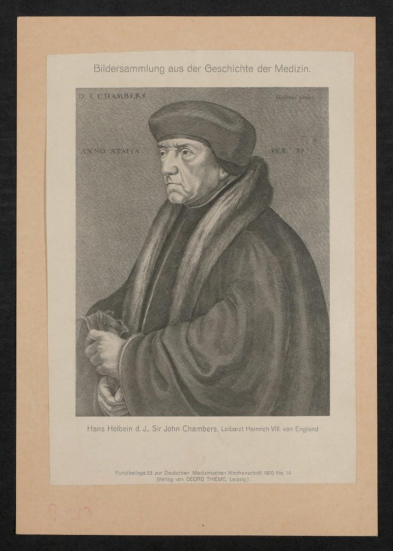 Als Kunstbeilage Nr. 53 in der Bildersammlung aus der Geschichte der Medizin, in: Deutsche Medizinische Wochenschrift, Nr. 14, 1910, veröffentlicht. Die Angabe von 88 Jahren ist falsch. Bei dem Druck handelt es sich um eine Reproduktion eines Gemäldes von Hans Holbein dem Jüngeren. Das originale Gemälde befindet sich in der Gemäldegalerie des Kunsthistorischen Museums Wien. Im Verlag von Georg Thieme erschienen.