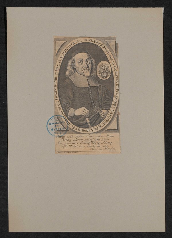 Der Kupferstich ist von Christian Romstet angefertigt worden. Vorderseitig mit einem Stempel des Instituts für Geschichte der Medizin, Wien, versehen.