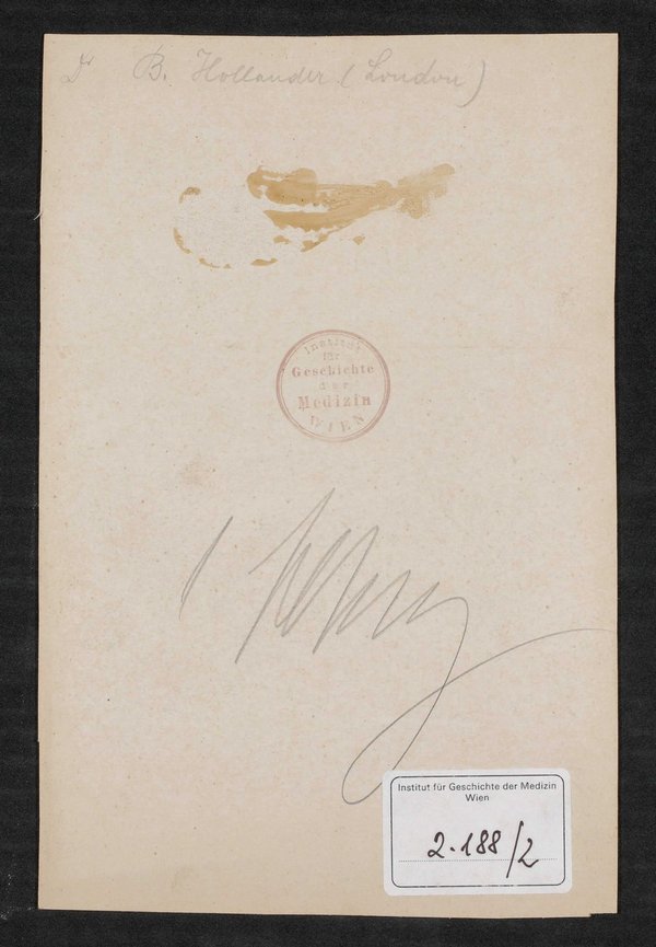 Rückseitig ist der Name Bernard Hollander notiert. Unklar ist, ob er das Porträt dem Josephinum geschenkt hat.