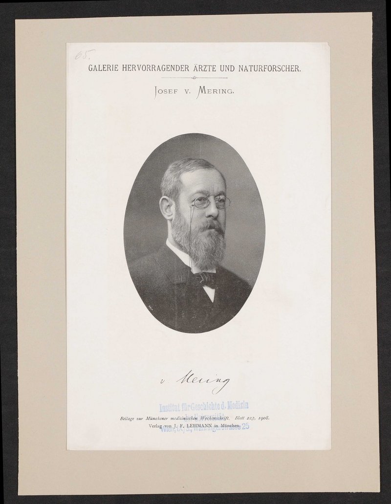 Auszug aus: Galerie hervorragender Ärzte und Naturforscher, in: Beilage zur Münchener medizinischen Wochenschrift, München 1908, Bl. 223. Vorderseitig mit einem Stempel des Instituts für Geschichte der Medizin, Wien, versehen.