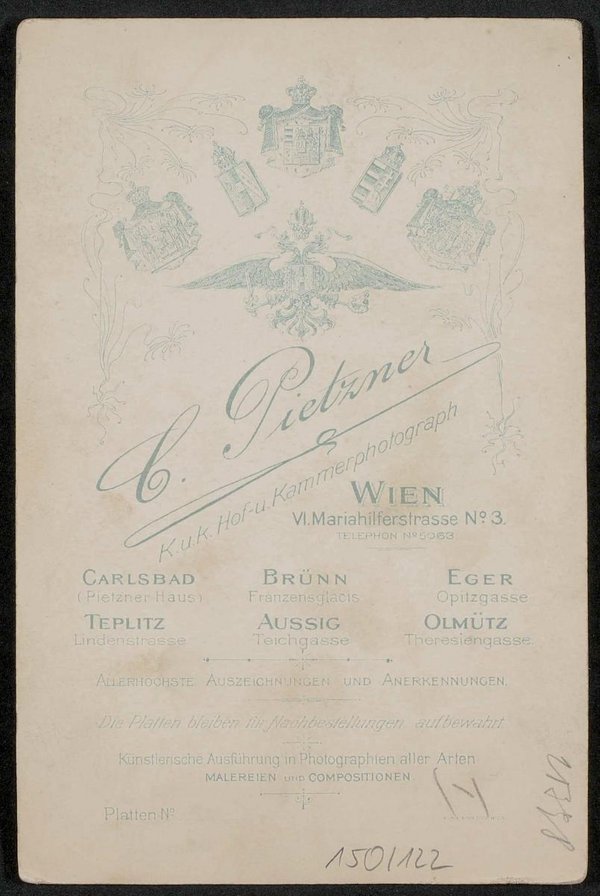 Die Fotografie wurde von Carl Pietzner, K.u.K. Hof- und Kammerphotograph, Wien, angefertigt.