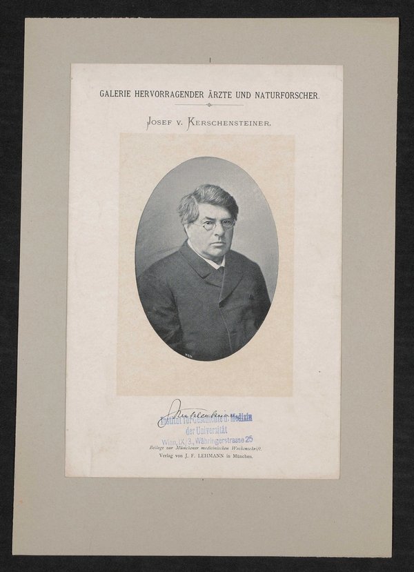 Auszug aus: Galerie hervorragender Ärzte und Naturforscher, in: Beilage zur Münchener medizinischen Wochenschrift. Vorderseitig mit einem Stempel des Instituts für Geschichte der Medizin, Wien, versehen.