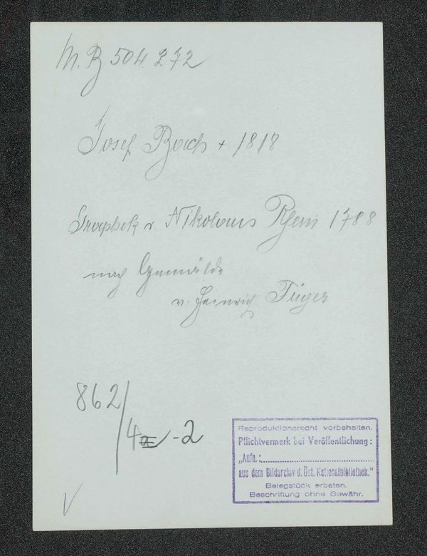 Der als Vorlage dienende Kupferstich wurde Nikolaus Rhein, Wien, nach einem Gemälde von Heinrich Friedrich Füger auf angefertigt. Neg. I. 16/35 Neg. (9x12) 332