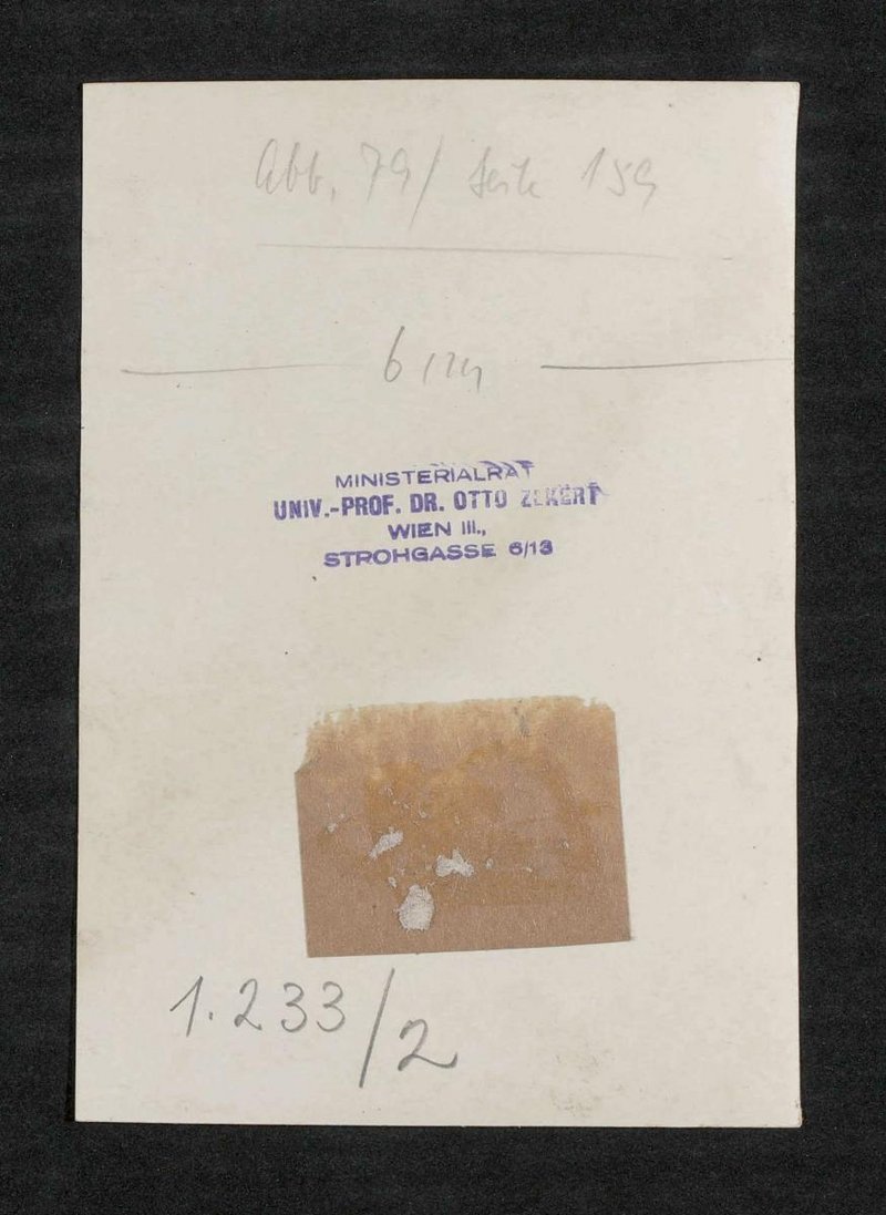 Die Vorlage entstammte der Bibliotheque de Universite, Paris. Rückseitig mit einem Besitzstempel von Otto Zekert, Medizinalrat, Wien, sowie mit Maßangaben, die auf den Abdruck in einer Buchpublikation hinweisen.