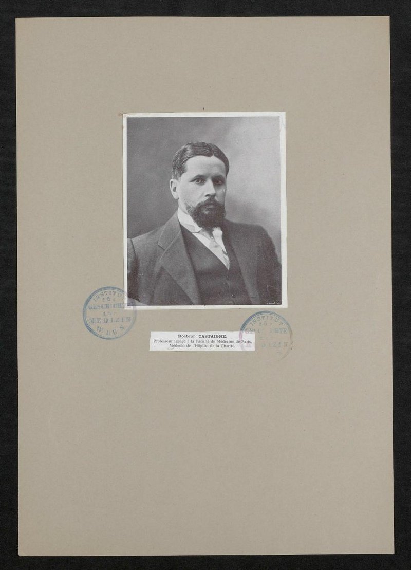 Die Herkunft des Ausschnitts ist unbekannt. Die der Abbildung zugrundeliegende Fotografie stammte von Henri Manuel. Vorderseitig mit zwei Stempeln des Instituts für Geschichte der Medizin, Wien, versehen.