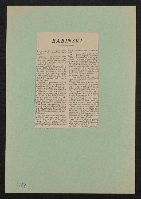 Mit rückseitigem französischsprachigen Bericht über seine fachlichen Fertigkeiten. Bild und Bericht sind der französischsprachigen Fachzeitschrift La Vie Medicale entnommen worden.