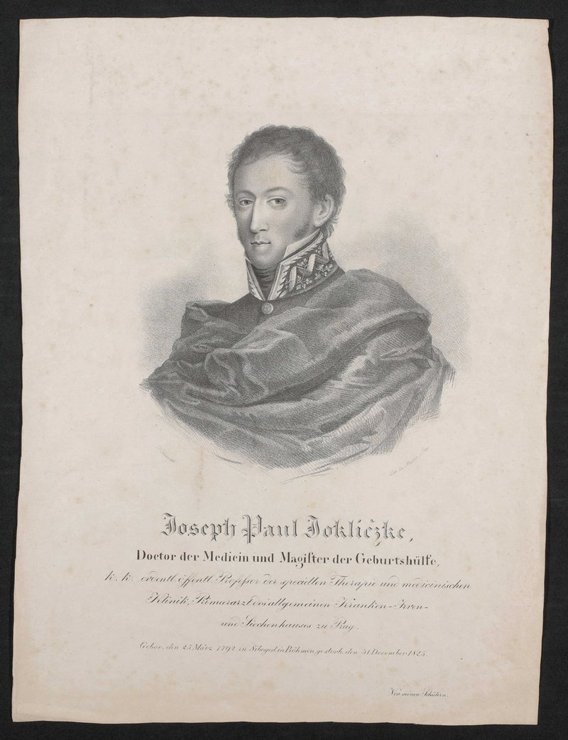 Es handelt sich um eine Lithographie von František Václav Schier, als Drucker fungierte Anton Machek. Das Bild stammt aus der Sammlung von Franz Theodor Brücke.