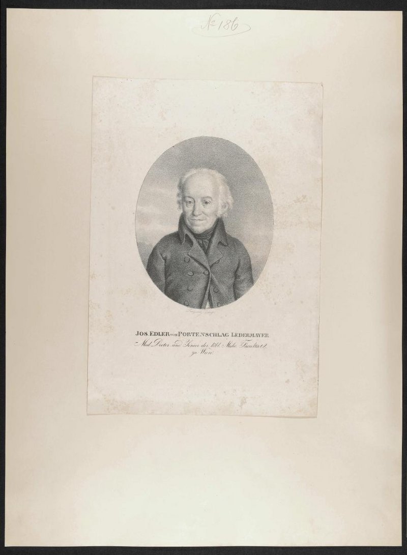 Die Lithografie wurde von Josef Lanzedelly, Wien, angefertigt. Rückseitig befindet sich ein Stempel der Gesellschaft der Ärzte in Wien, Wien.
