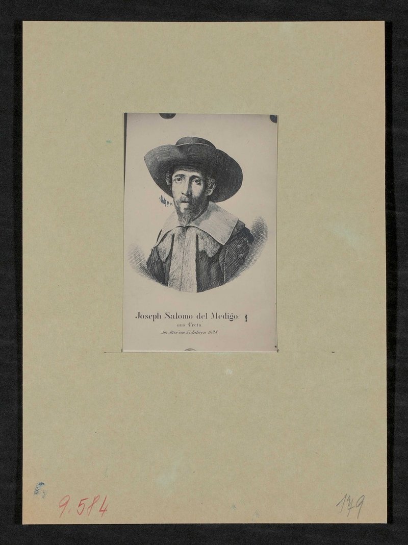 Das originale Porträt befand sich zum Zeitpunkt der Aufnahme in der Österreichischen Nationalbibliothek. Vorlage war ein Kupferstich von Willem Delff, nach einem Gemälde von Willem Cornelisz Duyster.