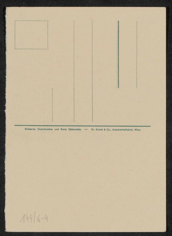 Der Kupferstich stammt von Paar. Die Ansichtskarte wurde von der Dr. Kutiak und Co., Arzneimittelfabrik, Wien, in der Bilderserie Naturforscher und Ärzte Österreichs vertrieben.