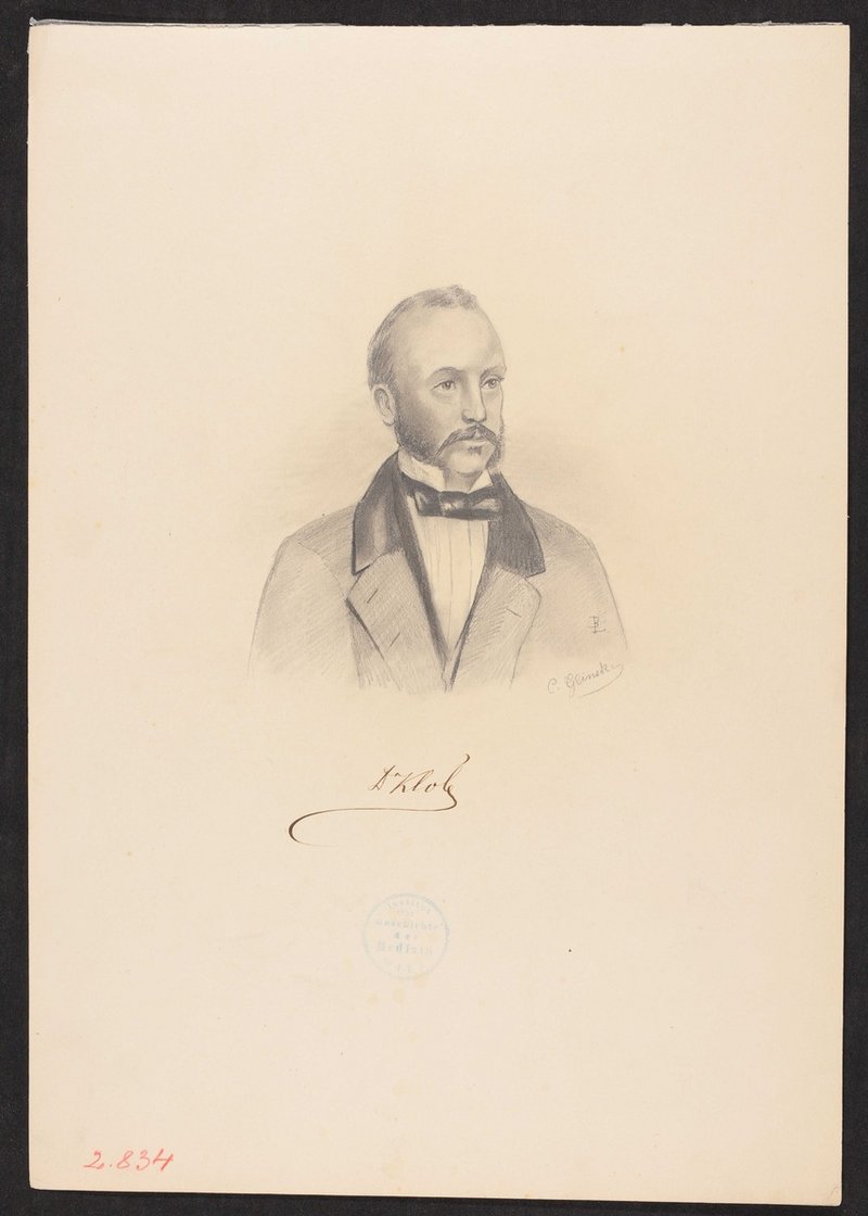 Die als Vorlage dienende Zeichnung wurde 1859 von C. Glinsky angefertigt. Vorderseitig mit einem Stempel des Instituts für Geschichte der Medizin, Wien, versehen.