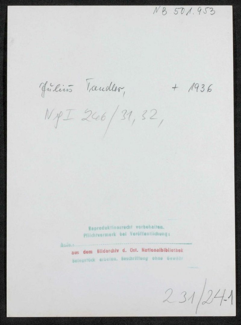 Die Fotografie stammt aus dem Bildarchiv der Österreichischen Nationalbibliothek, Wien. Neg I 246/31, 32 Neg III 34/1