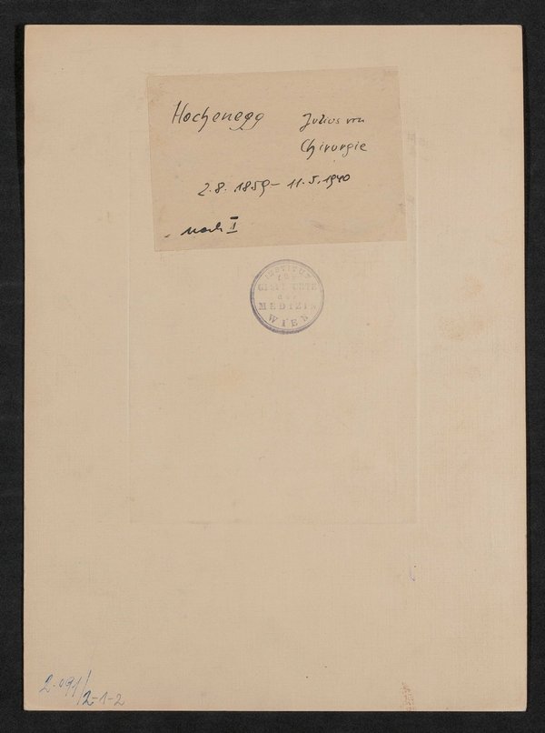 Die Fotografie ist von Max Schneider, Wien, angefertigt worden. Vorder- und rückseitig mit Stempeln des Instituts für Geschichte der Medizin, Wien, versehen.