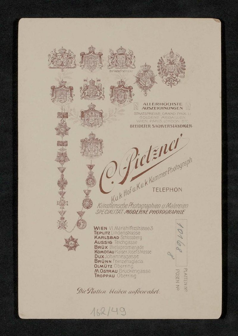 Die Fotografie wurde von Carl Pietzner, Wien, angefertigt.