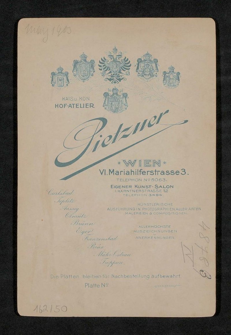 Die Fotografie wurde von Carl Pietzner, Wien, angefertigt.