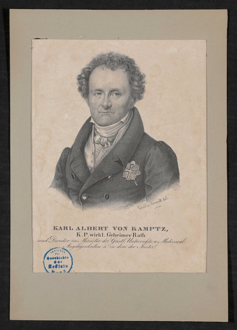 Die Lithografie ist auf Grundlage eines Bildes von Cäcilie Brandt von Johann Friedrich August Kneisel angefertigt worden. Vorderseitig mit einem Stempel des Instituts für Geschichte der Medizin, Wien, versehen.