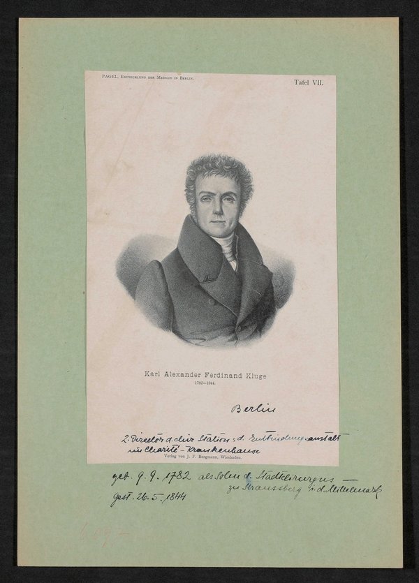 Der Ausschnitt ist entnommen aus: Julius Pagel, Die Entwicklung der Medizin in Berlin. Von den ältesten Zeiten bis auf die Gegenwart - Eine historische Skizze, Berlin 1897, Tafel VII.