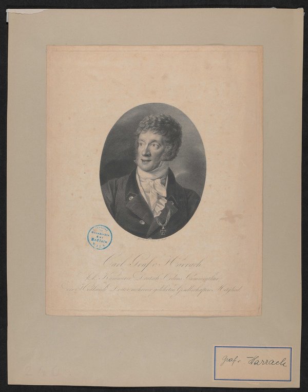 Der Kupferstich ist von Carl Heinrich Rahl auf Basis eines Gemäldes von Karl Agricola angefertigt worden. Vorderseitig mit einem Stempel des Instituts für Geschichte der Medizin, Wien, versehen.
