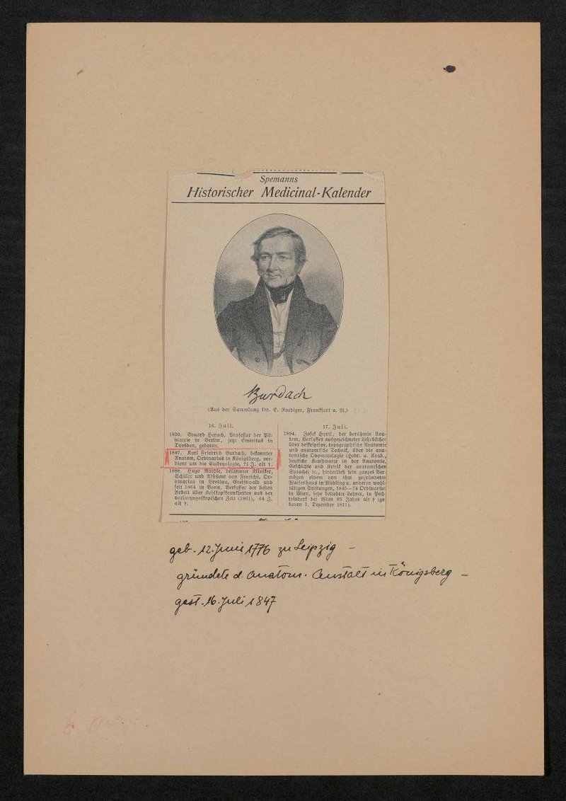 Auszug aus: Spemanns Historischer Medicinal-Kalender. Die dem Druck zugrundeliegende Lithografie wurde von Josef Kriehuber, Wien angefertigt. Sie stammte aus der Sammlung Ernst Roediger, Frankfurt am Main.