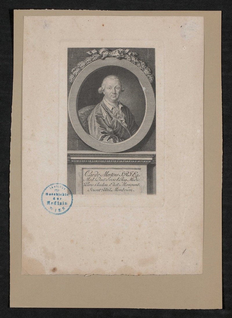 Der Kupferstich ist von Johann Ernst Mansfeld auf Grundlage eines Gemäldes von Gabrielle Beyer angefertigt worden. Vorderseitig mit einem Stempel des Instituts für Geschichte der Medizin, Wien, versehen.