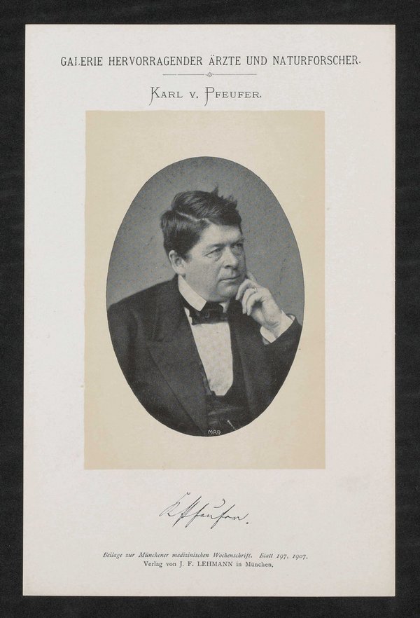 Auszug aus: Galerie hervorragender Ärzte und Naturforscher, in: Beilage zur Münchener medizinischen Wochenschrift, 1907, Bl. 197. Das Bild wurde im Verlag von Julius Friedrich Lehmann herausgegeben.