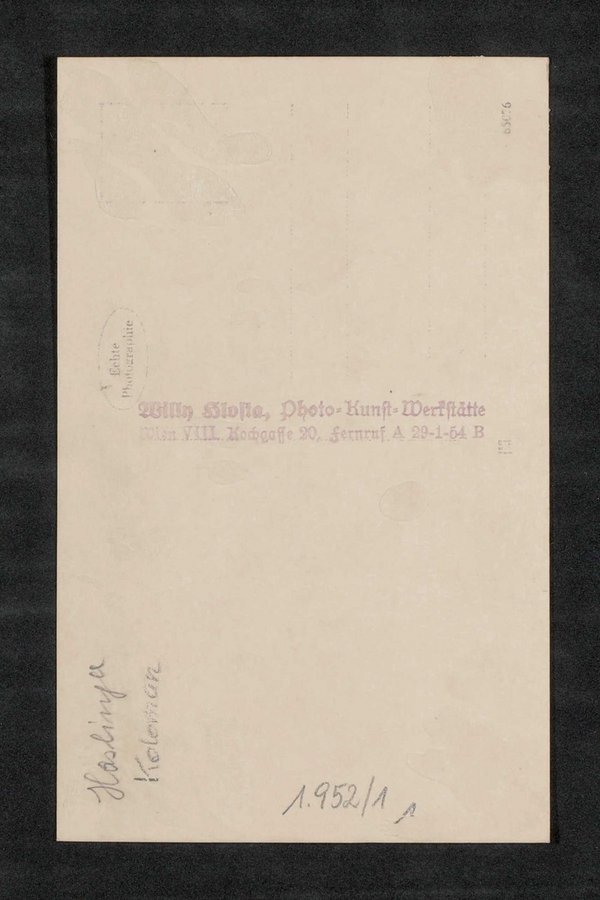 Die Fotografie wurde in der Photo-Kunst-Werkstätte von Willy Hlosta, Wien, angefertigt.