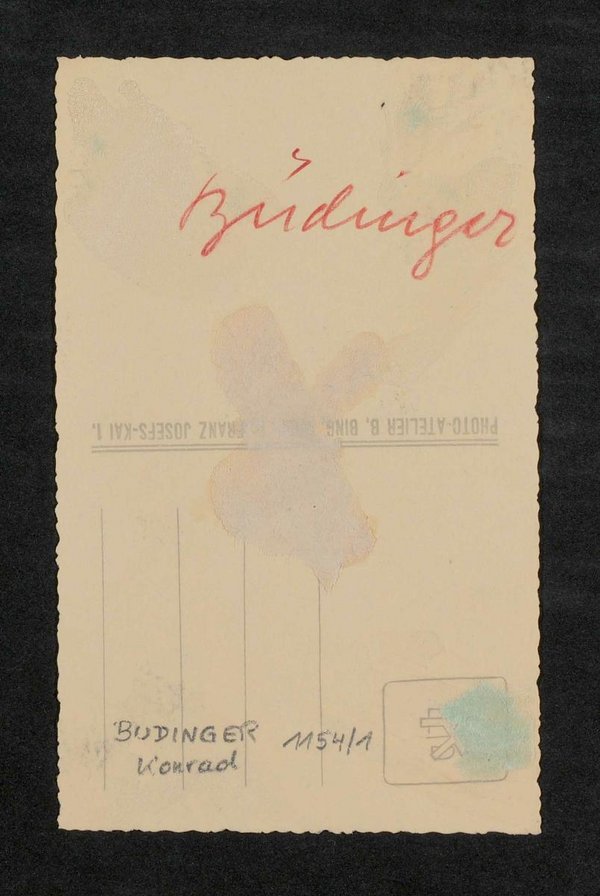 Der Fotografie stammt vom Fotoatelier Berthold Bing, Wien. Ihr liegt eine Karteikarte mit handschriftlichen biographischen Notizen zum Abgebildeten bei.