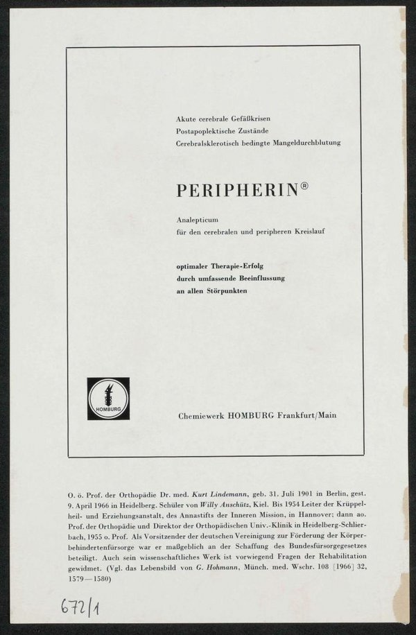 Auszug aus: Galerie hervorragender Ärzte und Naturforscher, in: Beilage zur Münchener medizinischen Wochenschrift, 1967, Bl. 710.
