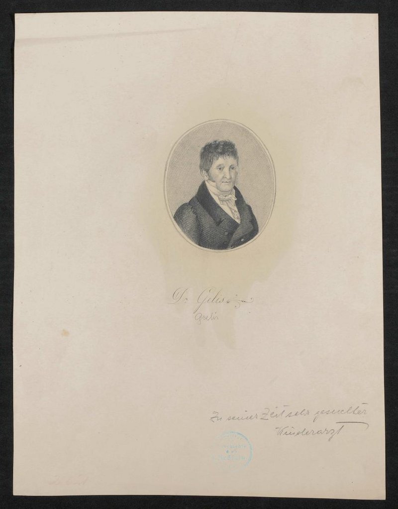 Unsignierte Bleistiftzeichnung eines Kupferstiches von Franz Xaver Stöber, nach einem Gemälde von Eduard Friedrich Leybold. Vorderseitig mit einem Stempel des Instituts für Geschichte der Medizin, Wien, versehen.