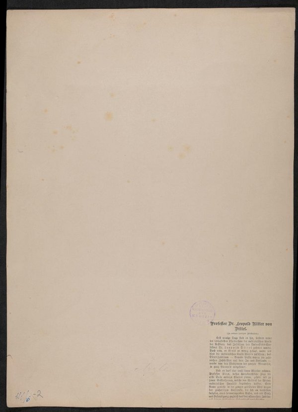 Mit einem Bericht über die fachlichen Fertigkeiten auf der Rückseite. Vorderseitig mit zwei Stempeln des Instituts für Geschichte der Medizin, Wien, versehen.