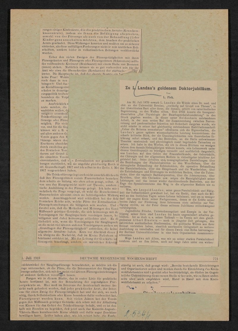 Bild und Bericht sind der Deutschen Medizinischen Wochenschrift, Juli 1918, entnommen worden.