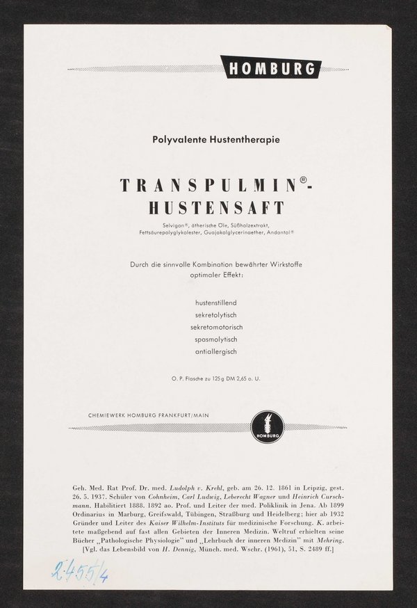 Auszug aus: Galerie hervorragender Ärzte und Naturforscher, in: Beilage zur Münchener medizinischen Wochenschrift, 1961, Bl. 675.