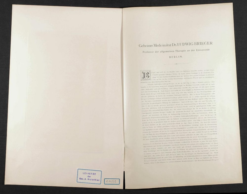 Die Heliogravüre ist vom Adolf Eckstein-Verlag, Berlin, herausgegeben worden. Es handelt sich um eine Leihgabe der Gesellschaft der Ärzte, Wien.