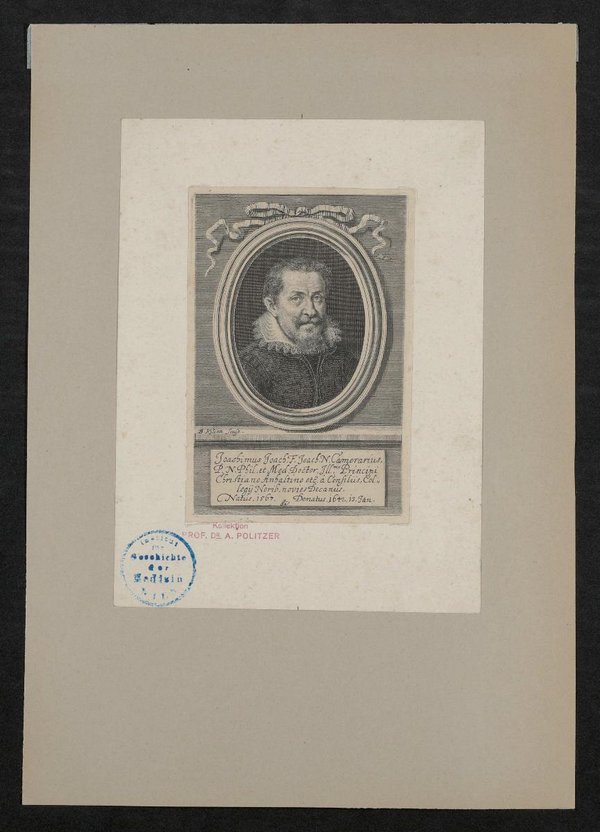 Der Kupferstich wurde von Bartholomäus Kilian, Augsburg, angefertigt. Vorderseitig mit einem Stempel des Instituts für Geschichte der Medizin, Wien, und einem Stempel der Kollektion Adam Politzer versehen.