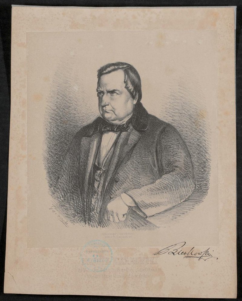 Die Zeichnung wurde 1864 von W. Gadomskiego, und die darauf basierende Lithografie von der Lithographischen Anstalt Czasu, Krakau, angefertigt. Vorderseitig mit einem Stempel des Instituts für Geschichte der Medizin, Wien, versehen.